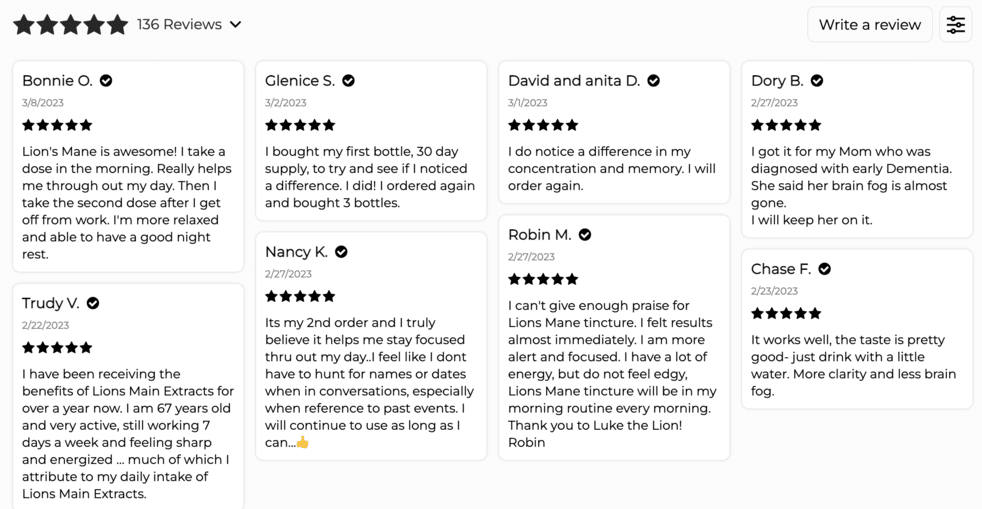 Mary and Sheri are not the only ones experiencing the life changing brain health enhancing benefits of lion's mane mushroom extracts...